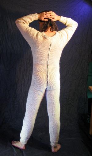 Below on the left, you see a 10-ply catsuit with a zipper in the front ending at the crotch or at the waist in the back.