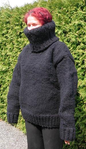 Black 10-ply woolmonster, made in stocking stitch and brushed fleecy with a special treatment